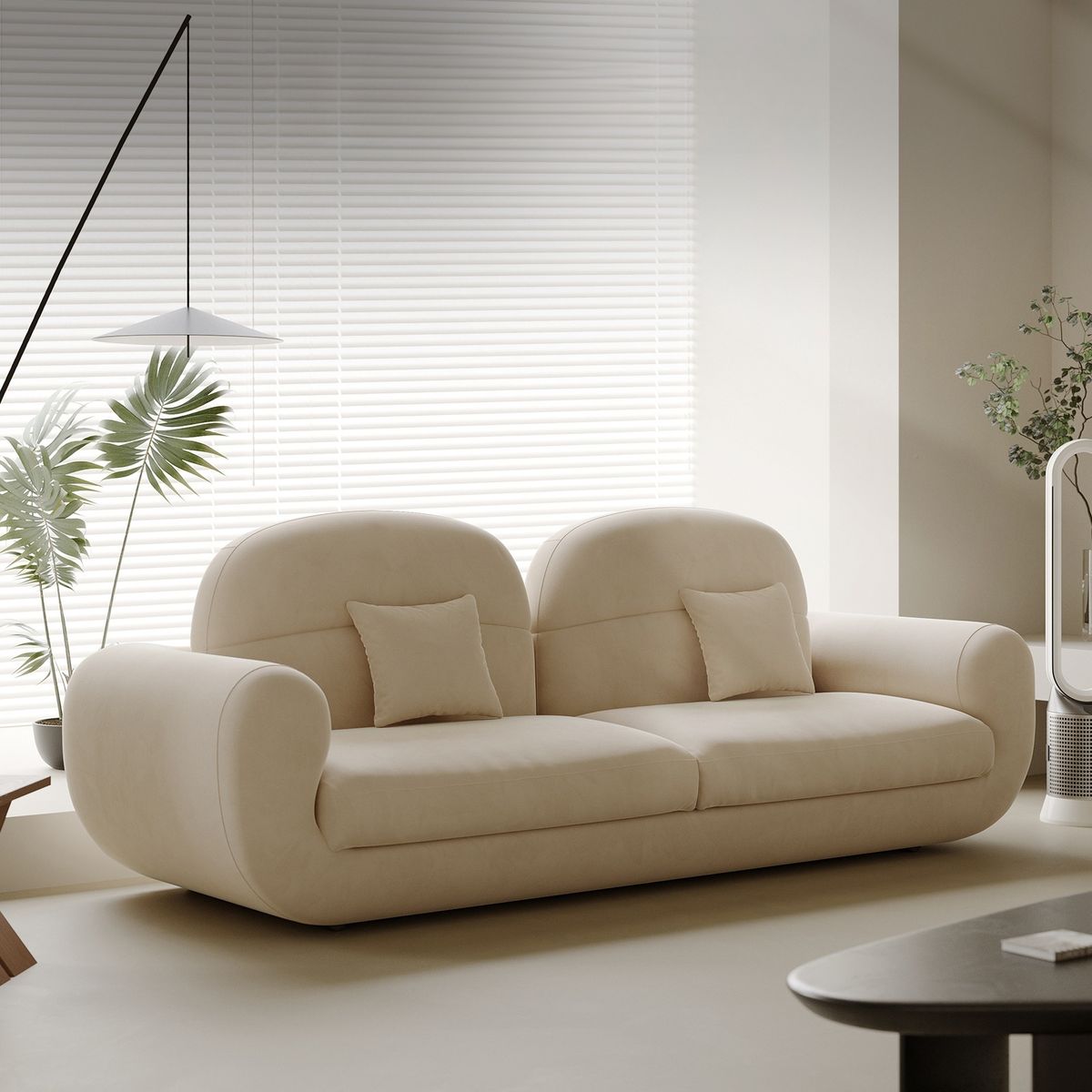 Wrapped in a soft beige finish, its plush cushioning and smooth contours create a warm, inviting presence perfect for sophisticated living spaces. The low-profile silhouette enhances contemporary interiors, making it ideal for luxury homes, upscale apartments, and curated minimalist décor.