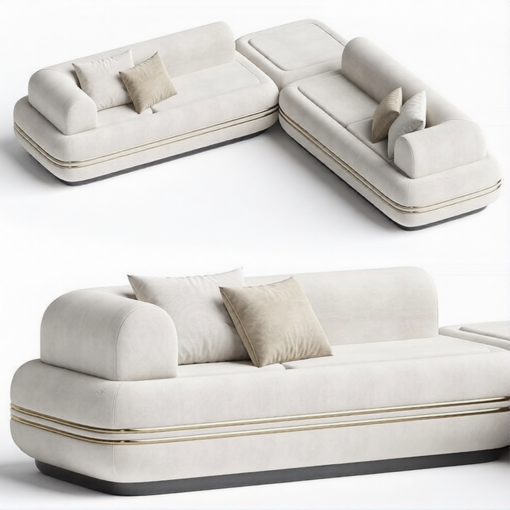 Crafted with premium upholstery and high-density foam cushioning, this modular sofa offers exceptional comfort while maintaining a sleek architectural profile. The rounded armrests and low-profile silhouette create a smooth, seamless aesthetic that complements luxury interiors in Dubai and across the UAE.